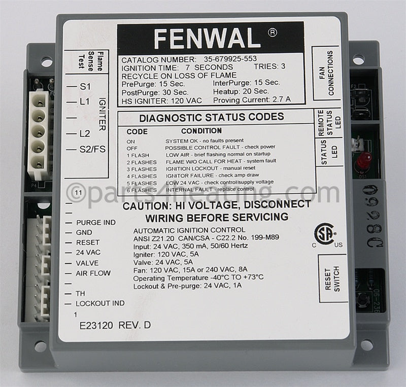 Laars Heating Systems , Ignition Control, Local Sensing, One Try - Part Number: E2311900